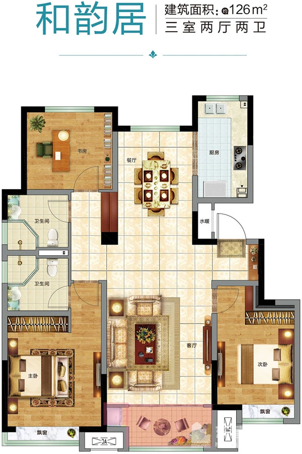 ? ? 向陽而生,是品質人居的重要標準?!?span style="font-size: 16px; color: rgb(255, 0, 0);">眾成和園】建筑面積約126㎡舒居三室,南向三開間設計,可滿足對陽光清風的生活需求;合理的開間與進深比例,可使空間利用率最大化,更顯房間寬闊軒朗。