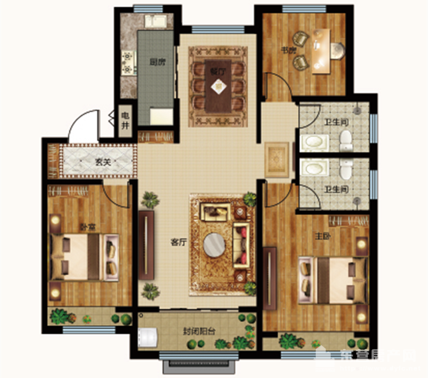 同時,闊綽的大三房空間充裕,既能三世同堂,和老人同住,又能滿足二胎需求,迎接新生命,提高了對家庭成長的包容能力。