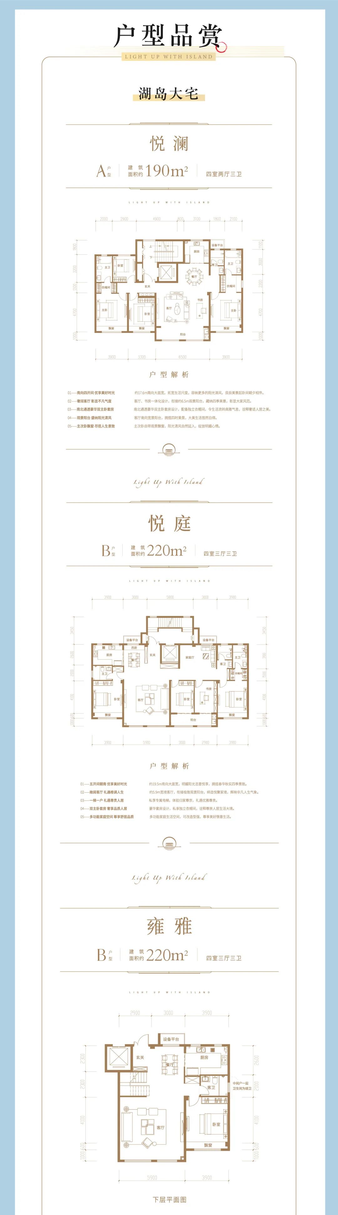 目前,建筑面積190-240㎡寬境疊拼/大平層,今年買·今年住,建筑面積135-145㎡低密電梯洋房,敬呈悅湖峯層,