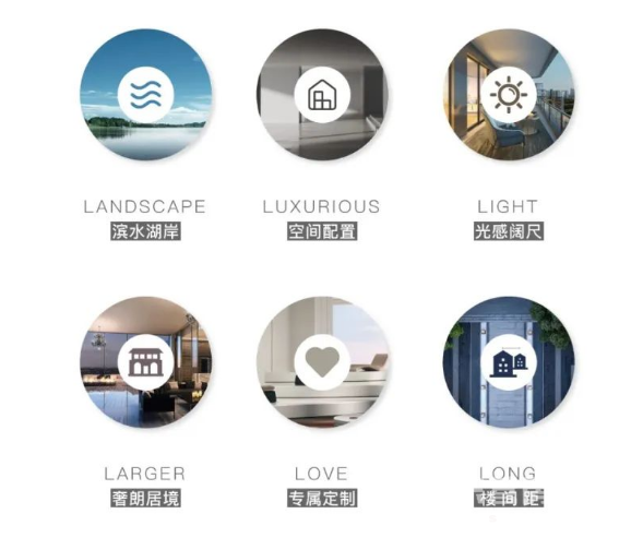L級作為項目寬境疊拼/大平層戶型創新的核心理念,由LANDSCAPE (濱水湖岸)、LUXURIOUS(空間配置) 、LIGHT光感闊尺)、LARGER (奢朗居境)LOVE(專屬定制)、LONG(樓間距)六大維度所構成。兼顧[家]的精神層面與多元化戶型功能中內向外,全維度滿足高階人居對生活質感的追求。