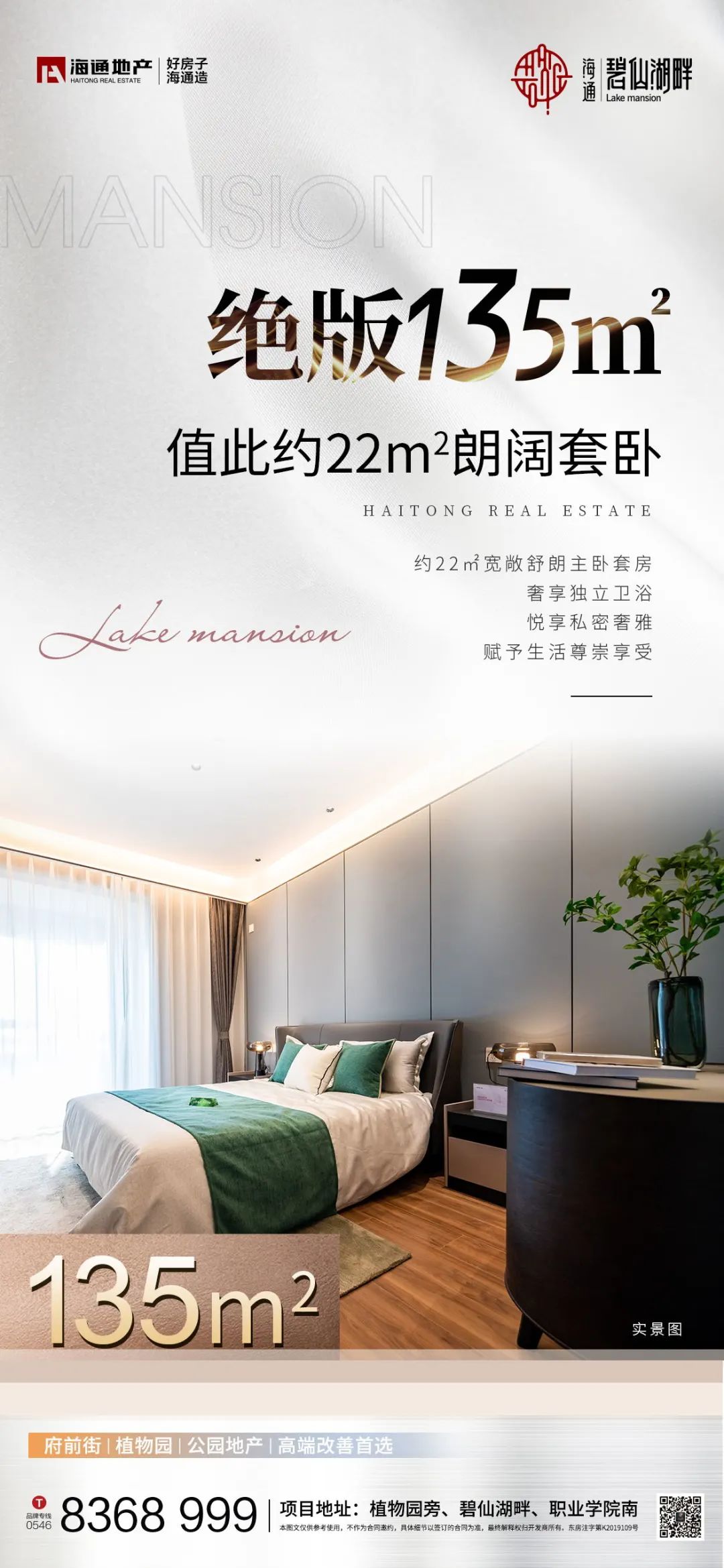 【海通碧仙湖畔】實景呈現,絕版建筑面積約135㎡三室,值此約建筑面積約22㎡朗闊套臥,值得臻藏。