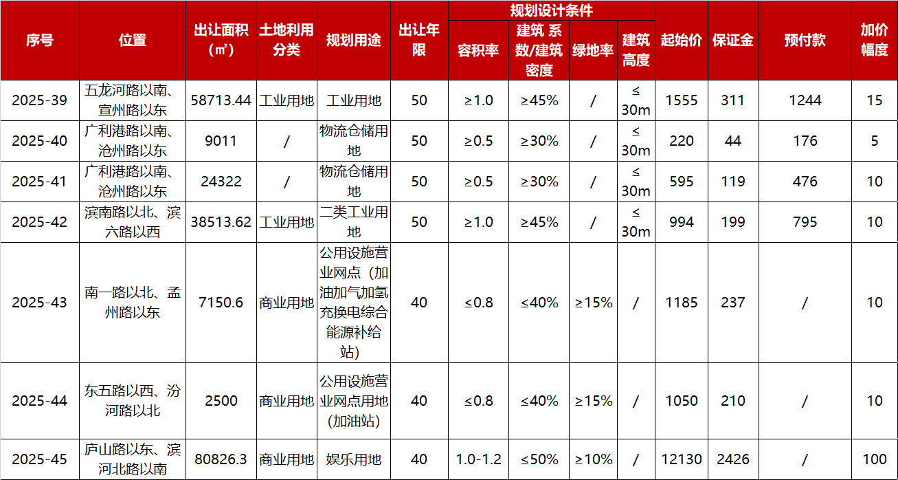 2025-39地塊:2025年9月5日9:00;